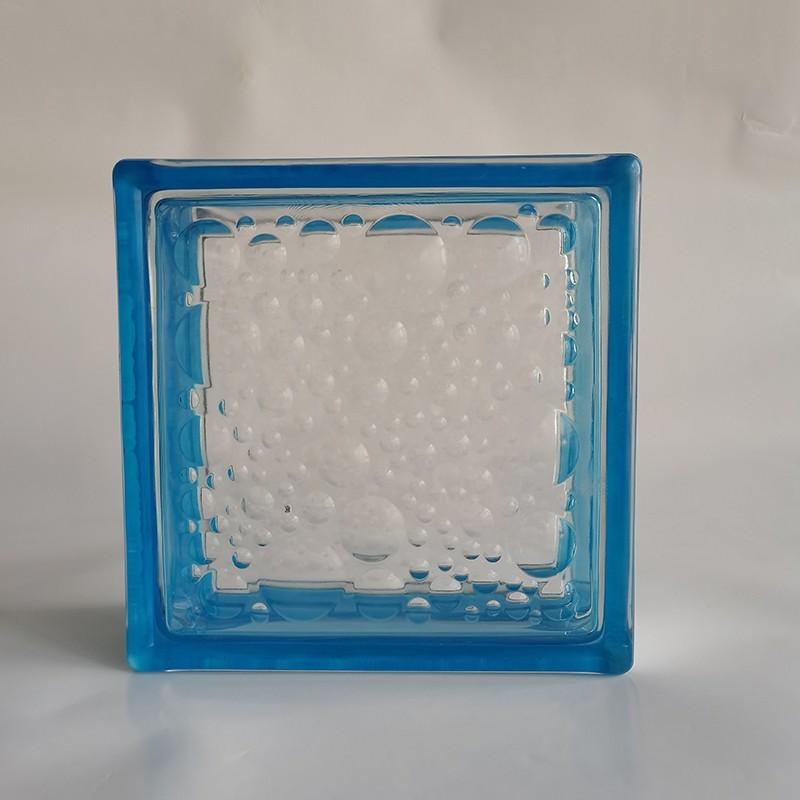 BLOCK VIDRIO BURBUJA BORDE CELESTE 19X19X8